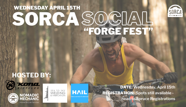 Join us for the first SORCA Social of the season, ‘Forge Fest!’ Supported by Sea to Sky Welding, Kona Bikes , Hail Nutrition, and Nomadic Mechanic.